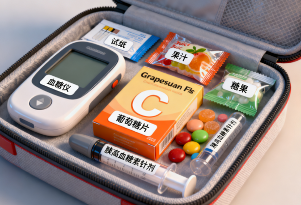 建议:糖尿病患者随身携带“低血糖急救卡”,包内放置3天用量快糖。