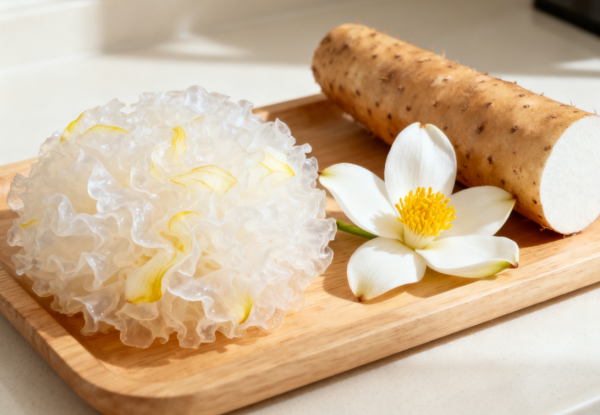 百合银耳羹:百合、银耳与冰糖共煮,有助滋阴润肺、和胃生津。