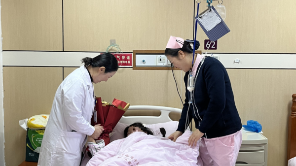 就在这个无比珍贵的时刻,一份意想不到的温馨悄然送至您的床前——那束由我们医护团队亲手献上的鲜花。