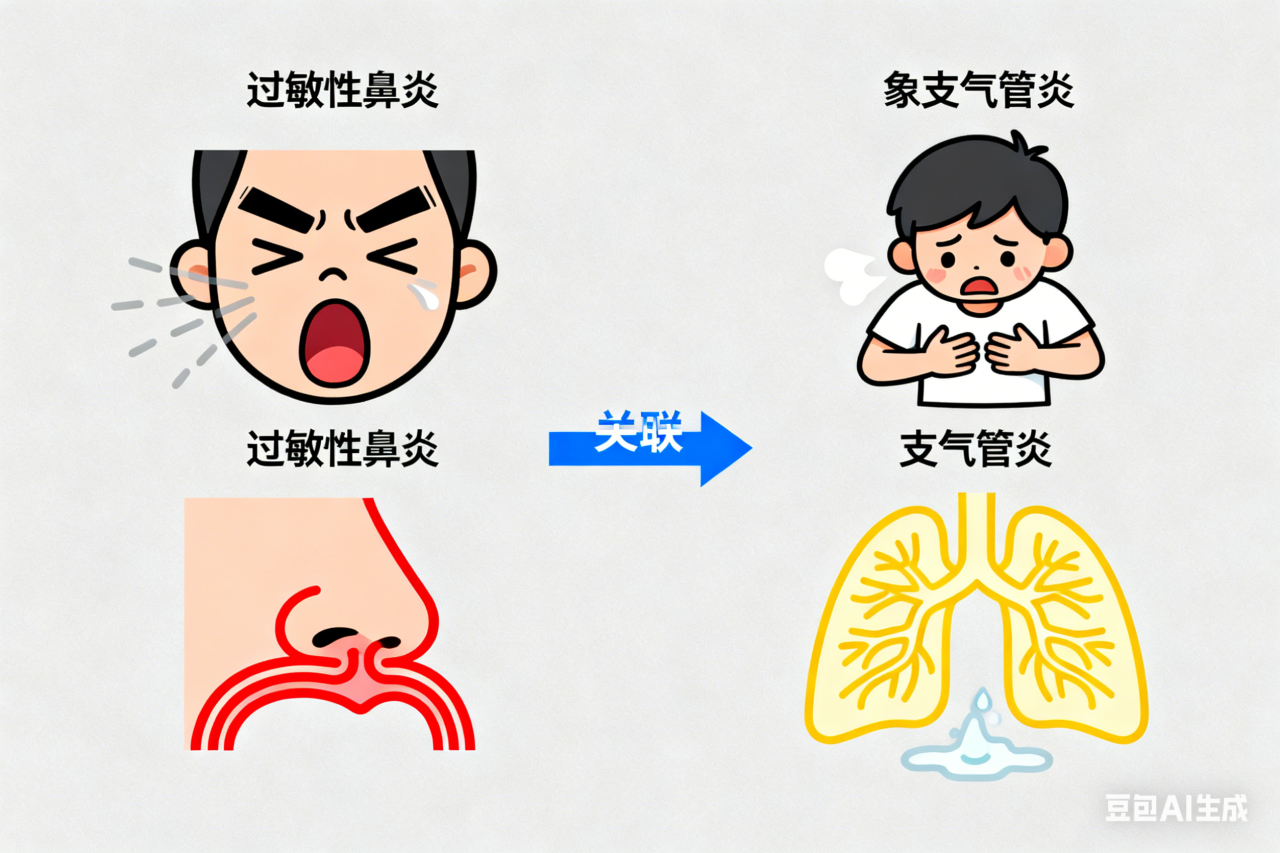 鼻腔黏膜和支气管黏膜受同一种迷走神经支配。当过敏原刺激鼻腔时,会通过神经反射,引起支气管的收缩和痉挛。长期如此,支气管会变得异常敏感,即“支气管高反应性”。这时,不仅冷空气、烟尘等轻微刺激就能引发咳嗽和喘息,也更容易在感染或过敏原的持续攻击下发展成支气管炎。