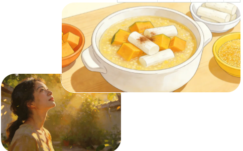 试试“冬至温煦碗”:将南瓜、山药、小米用文火慢炖至微温状态,加入少许肉桂粉。这是最符合冬至能量的饮食。