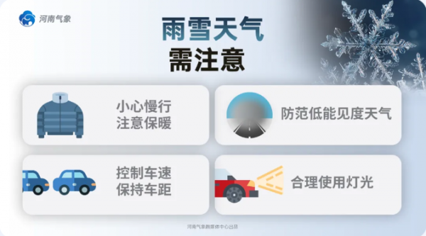 注意防范雨雪、道路结冰