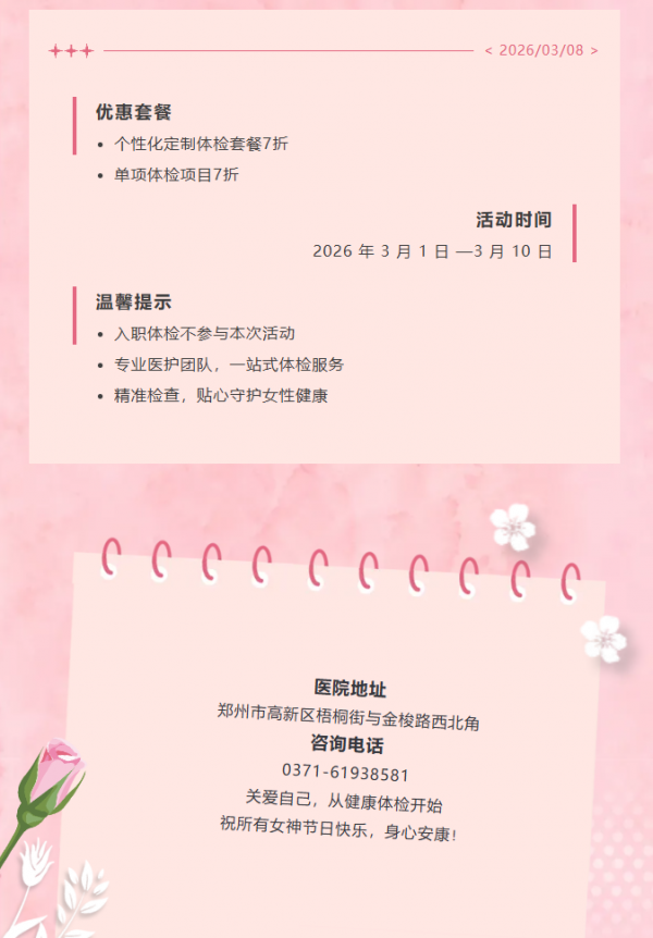 三八女神节——郑州西区中医中医院健康体检专属礼