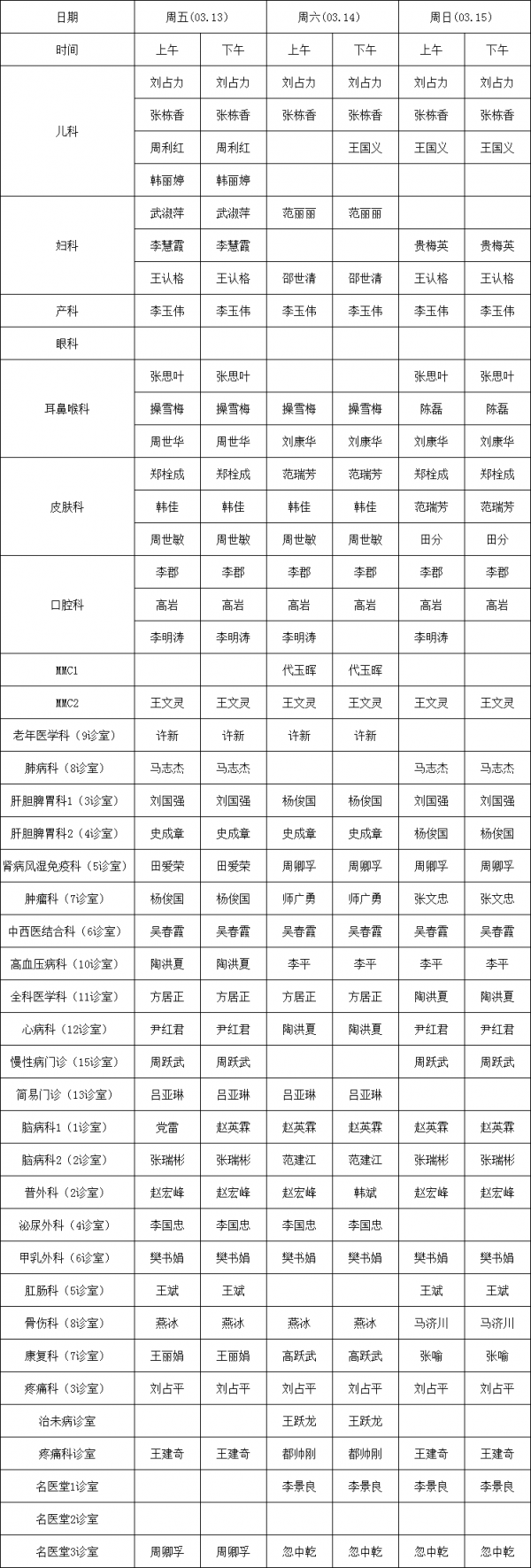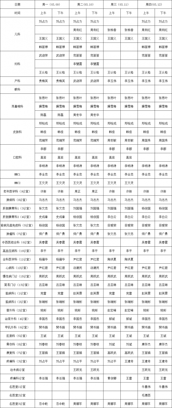 2026.03.09-03.15 门诊专家坐诊表