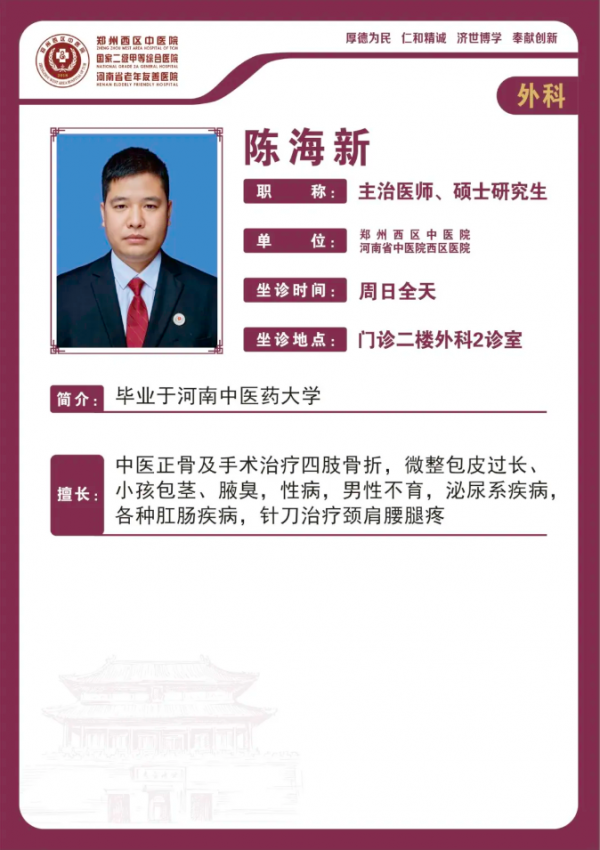 郑州西区中医院外二科是集普通外科、甲状腺乳腺外科、泌尿外科、骨伤科为一体的综合性外科诊疗中心。科室秉承“微创精准、中西医结合”的治疗理念,致力于为患者提供高效、安全且个性化的诊疗服务,在当地赢得了良好的声誉。