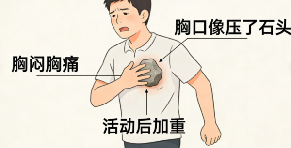 胸闷胸痛:胸口像压了石头,活动后加重